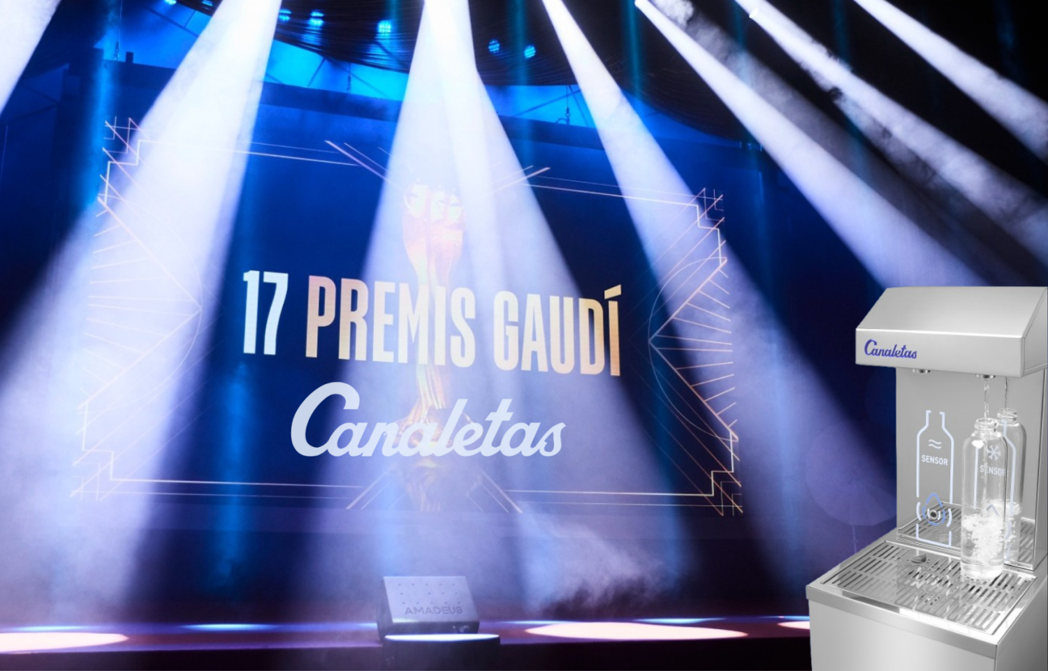 Durante la organización de los Premios Gaudí, se planteó una colaboración con Canaletas enfocada en la sostenibilidad. Esta propuesta, en línea con los valores medioambientales de Canaletas, consistió en la entrega de botellas reutilizables para los asistentes y reemplazar las botellas de agua de plástico por la instalación de fuentes de agua.